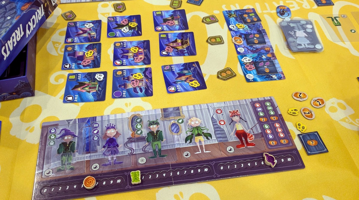Eine Woche nach der Messe war Halloween. Da war es ganz passend, ein Spiel mit gleichem Thema vorab zu testen. In „Tricky Treats“ müssen wir Kinder verkleiden, die um die Häuser ziehen, um Süßigkeiten einzusammeln.